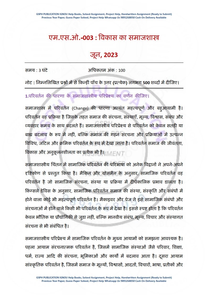 For guidance and to order IGNOU Solved Assignments or Handwritten Assignments, contact: