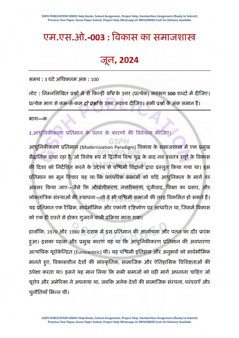 IGNOU MSO-03 Previous Year Solved Question Paper Hindi Medium (JUNE 2024)