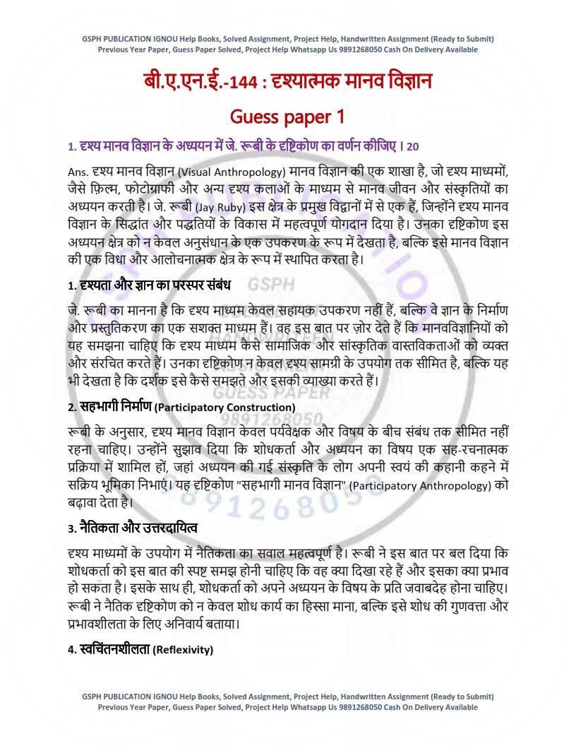 IGNOU BANE-144 Guess Paper Solved Hindi Medium | Instant PDF Download
