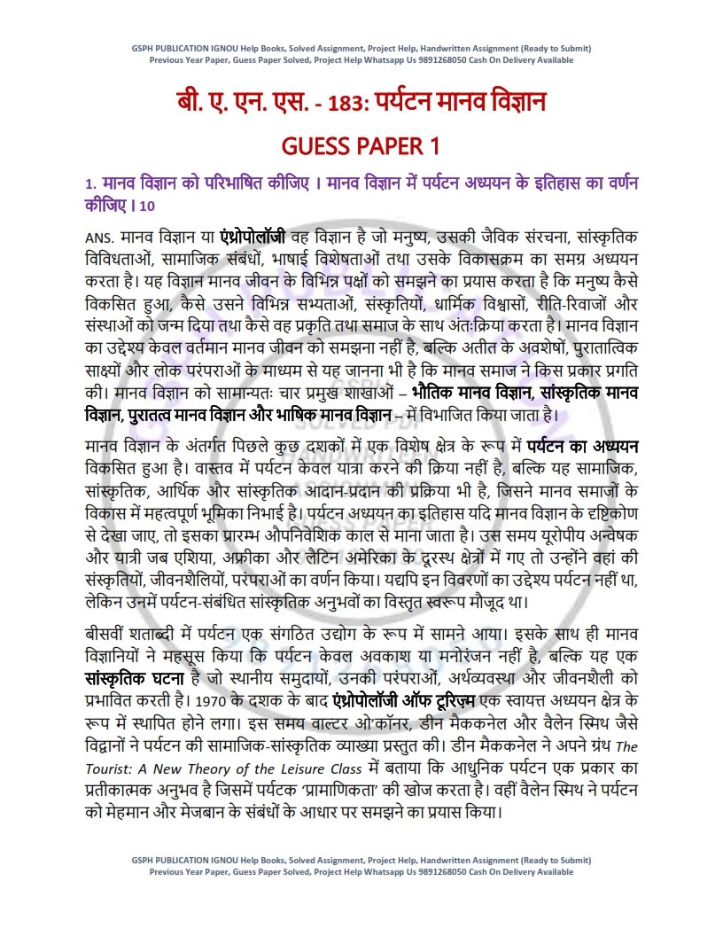IGNOU BANS-183 Guess Paper Solved Hindi Medium | Instant PDF Download