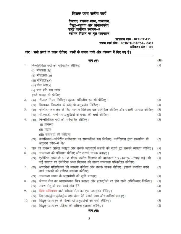 | Product | IGNOU BCHCT-135 Solved Assignment 2026 Hindi Medium |