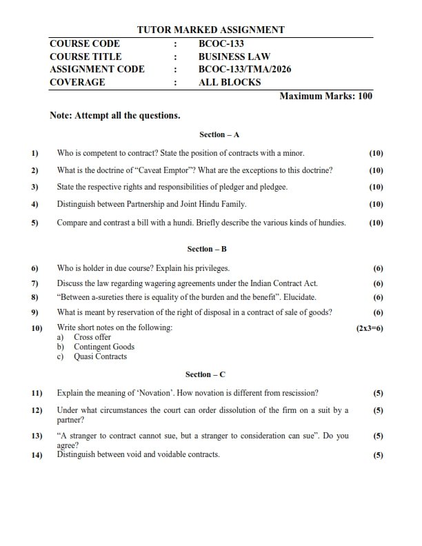 Are you searching for the IGNOU BCOC-133 Solved Assignment 2026 English Medium? You are at the right place. This instant download PDF contains complete and accurate answers prepared by experienced academic experts as per the latest IGNOU guidelines. All solutions are written in simple and easy language to help you understand the subject better and score good marks.