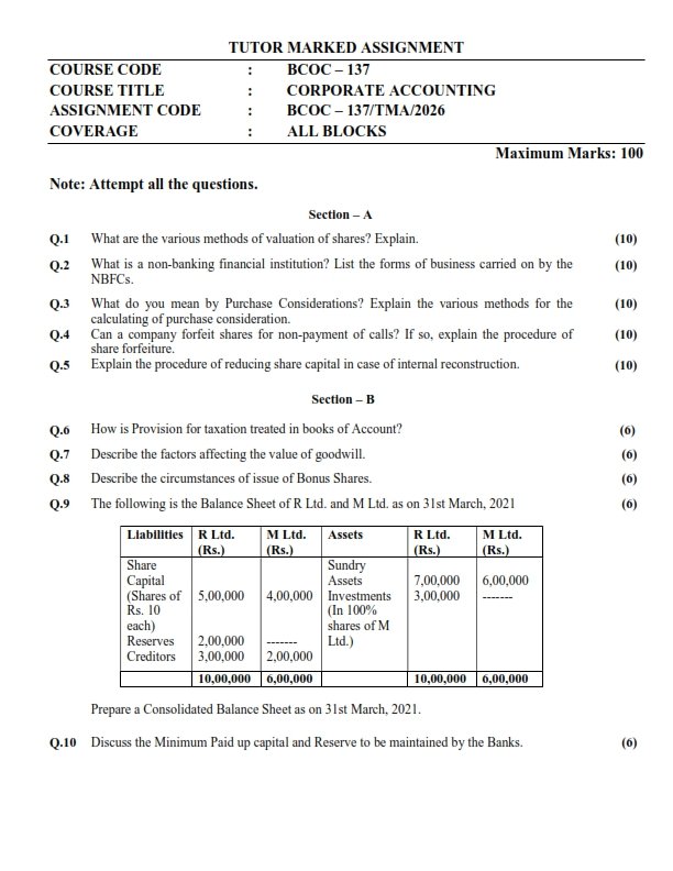 Are you searching for the IGNOU BCOC-137 Solved Assignment 2026 English Medium? You are at the right place. This instant download PDF contains complete and accurate answers prepared by experienced academic experts as per the latest IGNOU guidelines. All solutions are written in simple and easy language to help you understand the subject better and score good marks.