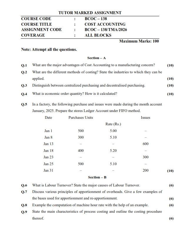 | Product | IGNOU BCOC-138 Solved Assignment 2026 English Medium |