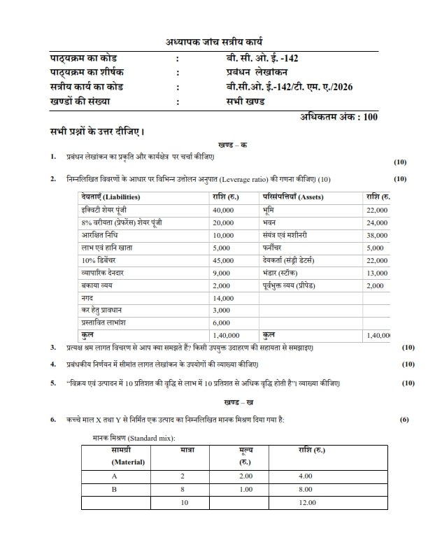 Are you searching for the IGNOU BCOE-142 Solved Assignment 2026 Hindi Medium? You are at the right place. This instant download PDF contains complete and accurate answers prepared by experienced academic experts as per the latest IGNOU guidelines. All solutions are written in simple and easy language to help you understand the subject better and score good marks.