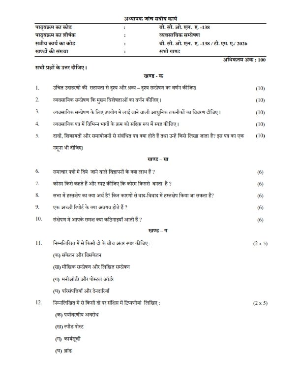 | Product | IGNOU BCOLA-138 Solved Assignment 2026 Hindi Medium |