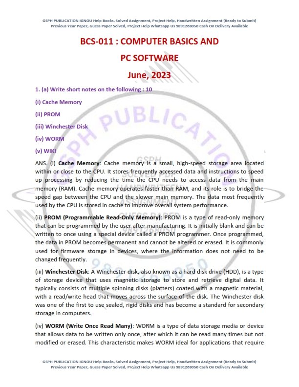 | Product | IGNOU BCS-11 Previous Year Solved Question Paper English Medium (June 2023) |