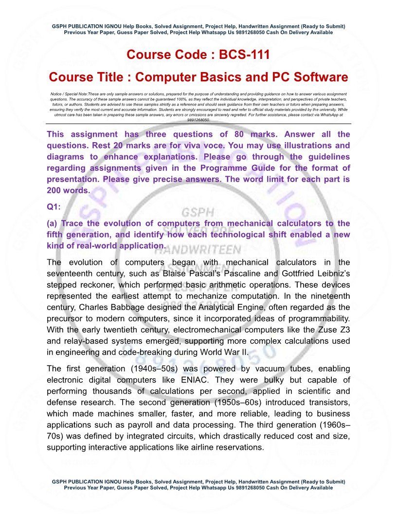 Product IGNOU BCS-111 Solved Assignment 2025-26 English Medium