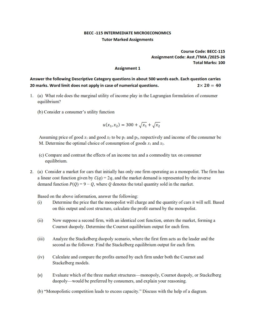 | Product | IGNOU BECC-115 Solved Assignment 2025-26 English Medium |
