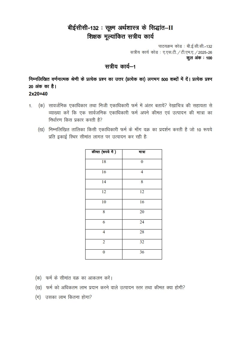 Get IGNOU BECC-132 Solved Assignment 2025-26 Hindi Medium
