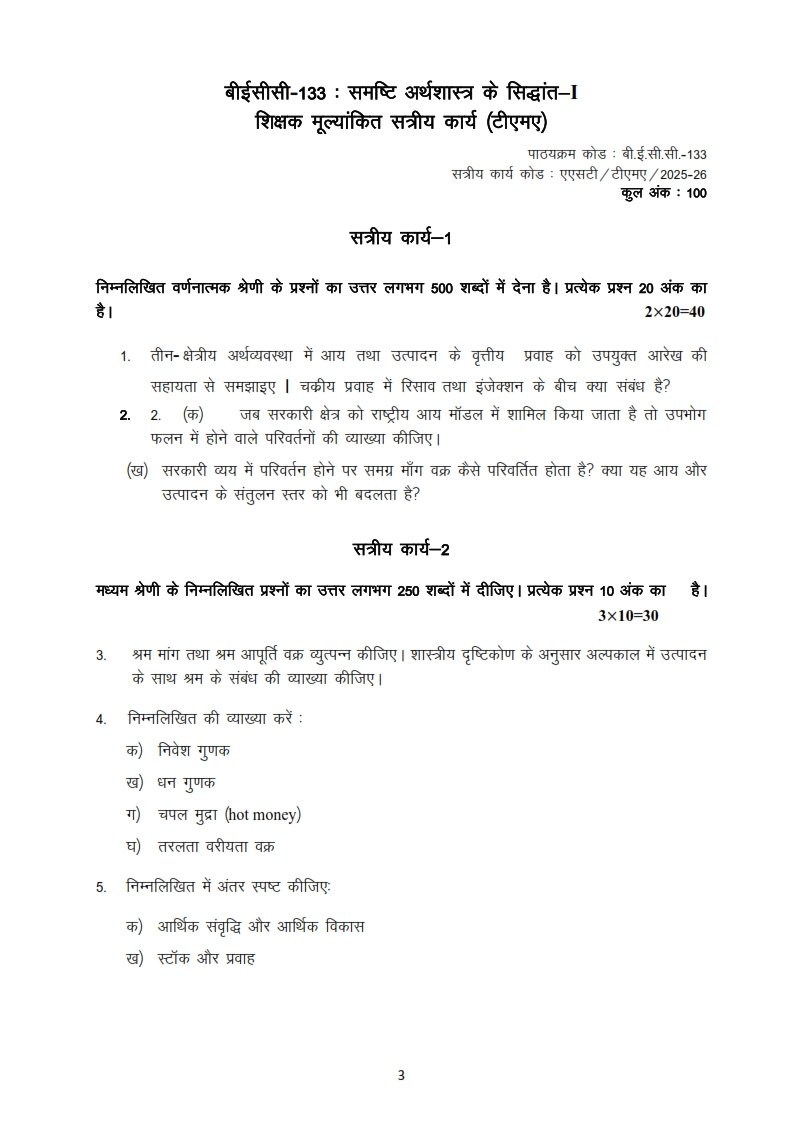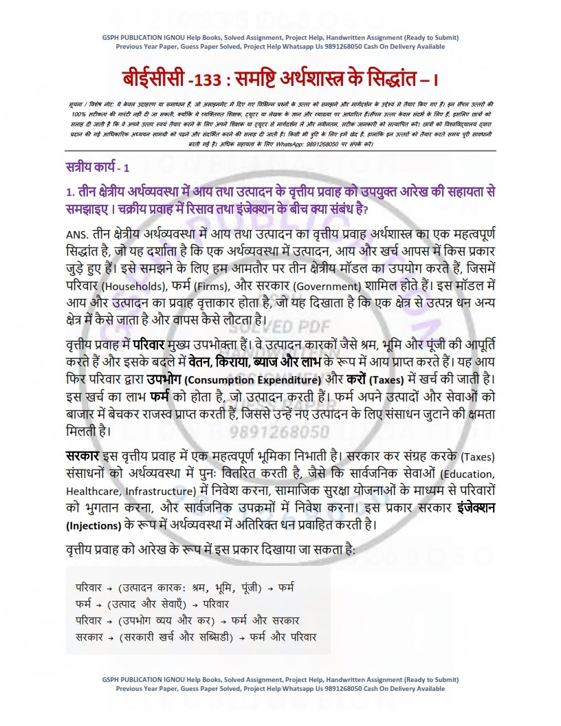 Get IGNOU BECC-133 Solved Assignment 2025-26 Hindi Medium