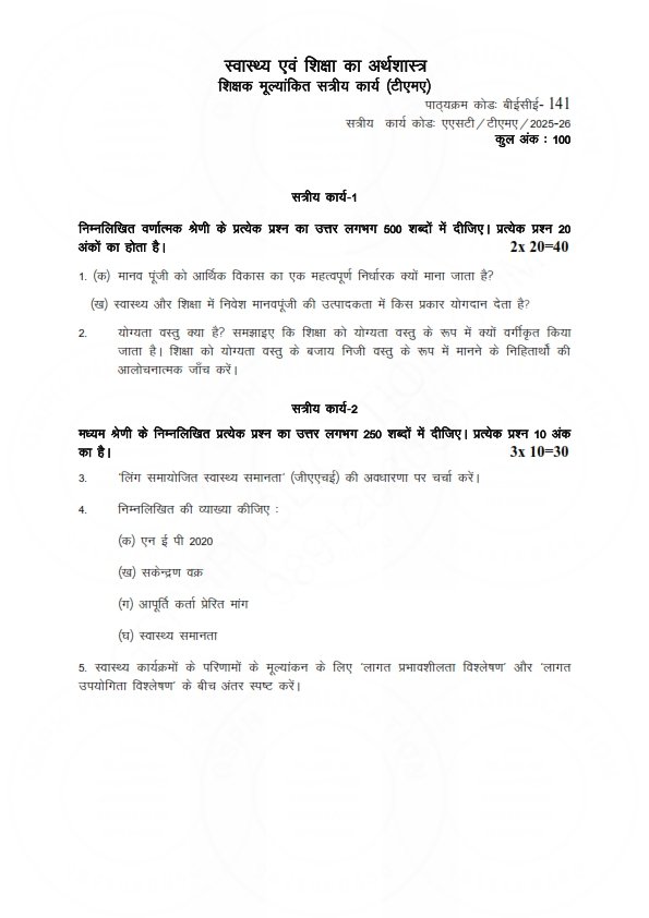 Get IGNOU BECE-141 Solved Assignment 2025-26 Hindi Medium