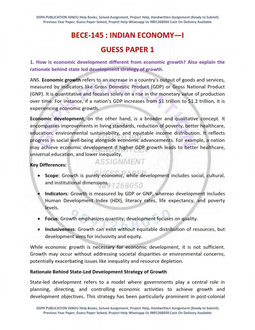 Note:-The IGNOU Guess Paper Solved (Subject) is provided strictly for reference and practice purposes only. It is intended to support students in their exam preparation and should not be considered as a guarantee that the exam questions will come from this paper. Students should use it as a supplementary resource alongside their official IGNOU study material.