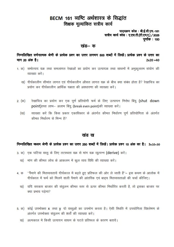 Get IGNOU BECM-161 Solved Assignment January 2025 Hindi Medium Downloadable PDF