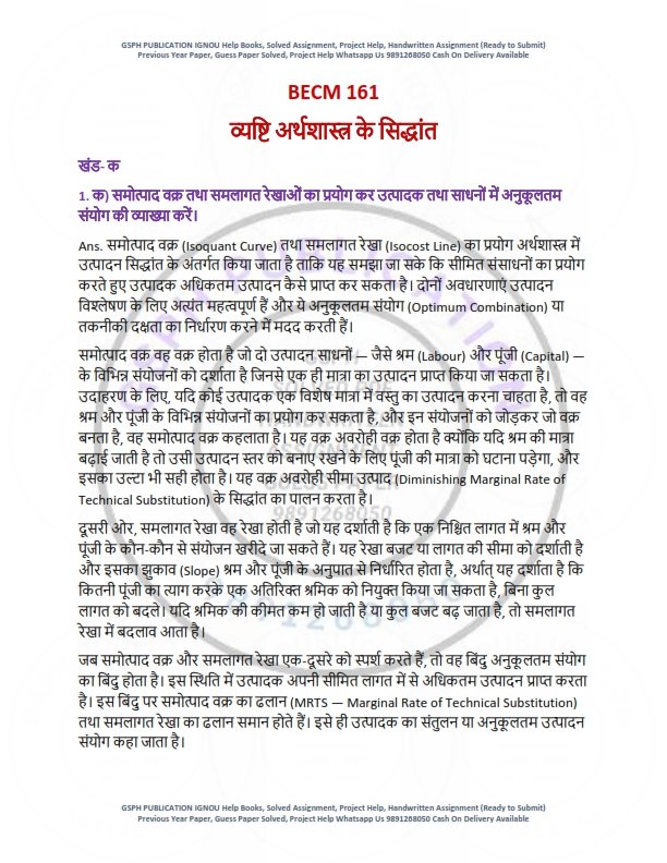 IGNOU BECM-161 Solved Assignment January 2025 Hindi Medium