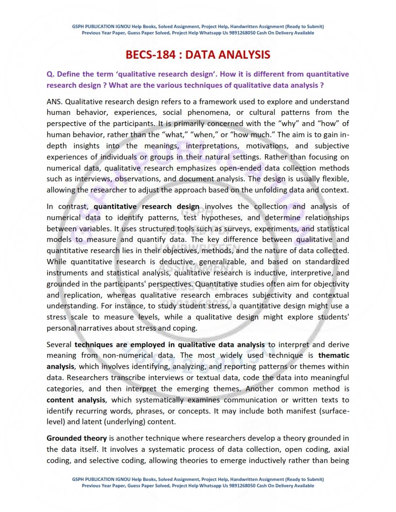 IGNOU BECS-184 Guess Paper Solved English Medium | Instant PDF Download