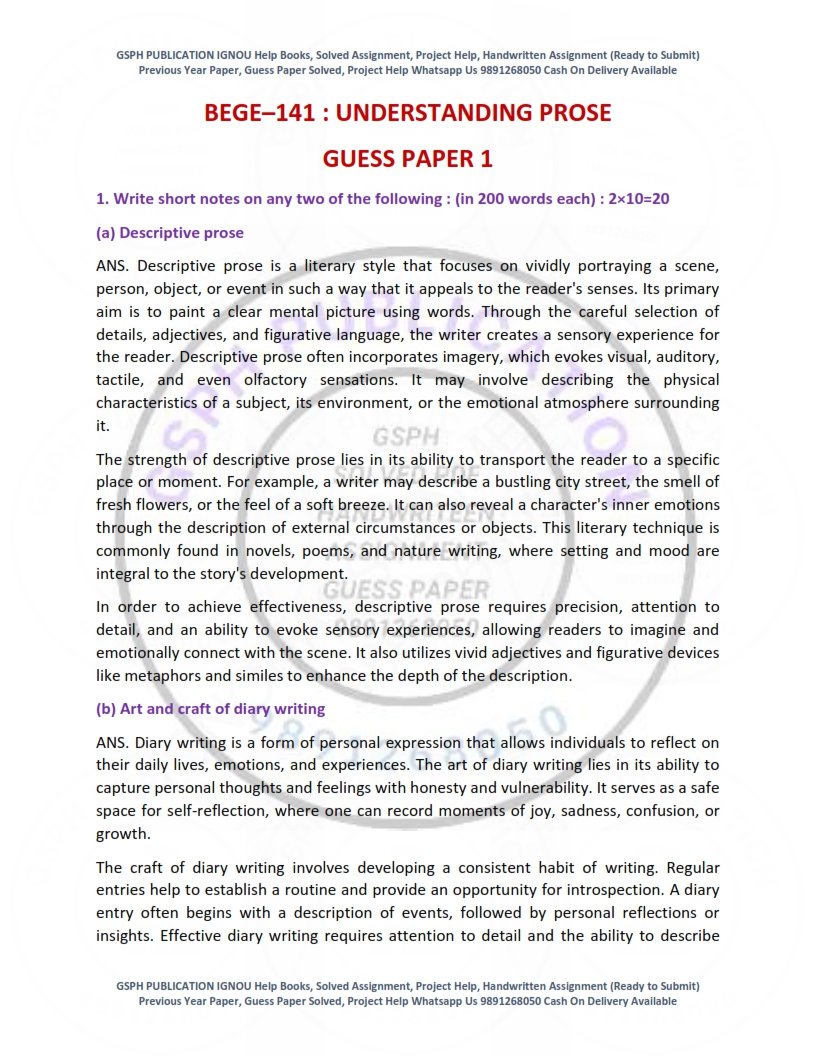 IGNOU BEGE-141 Guess Paper Solved English Medium| Instant PDF Download