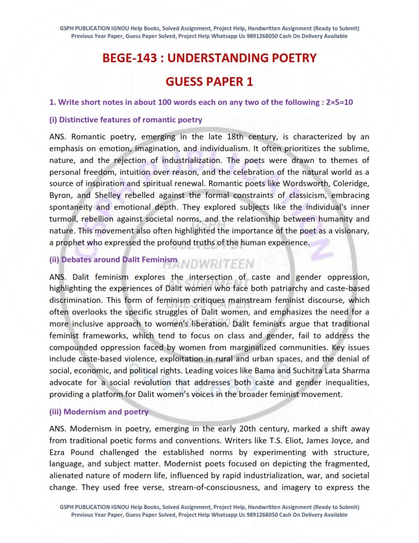 IGNOU BEGE-143 Guess Paper Solved English Medium| Instant PDF Download