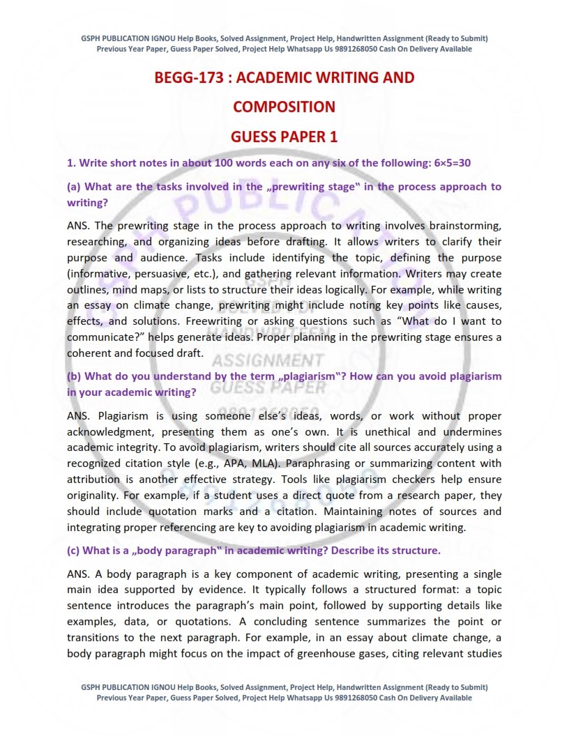 IGNOU BEGG-173 Guess Paper Solved English Medium | Instant PDF Download