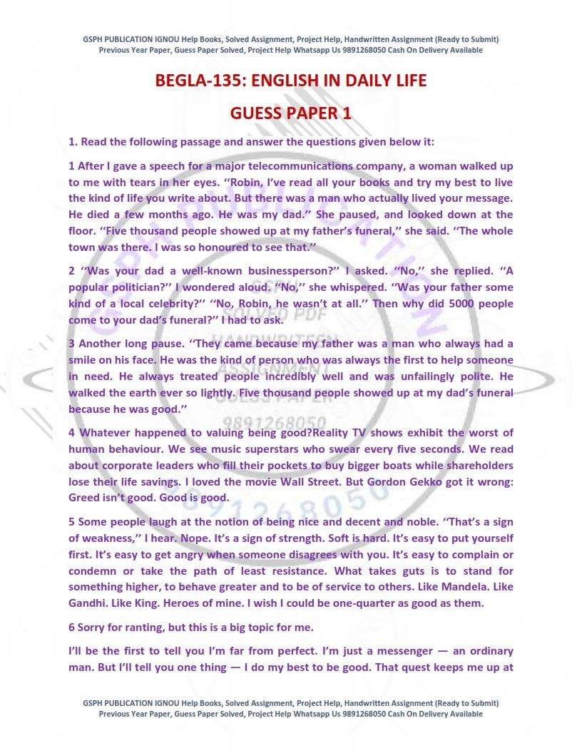 IGNOU BEGLA-135 Guess Paper Solved | Instant PDF Download
