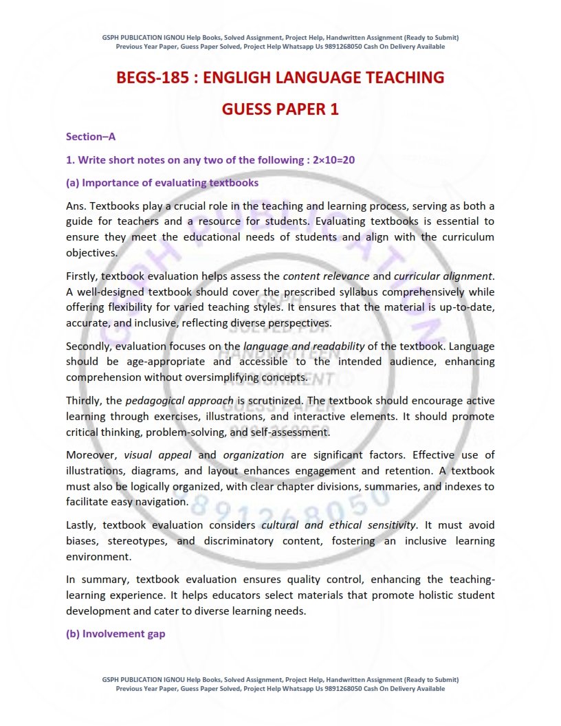 IGNOU BEGS-185 Guess Paper Solved English Medium| Instant PDF Download