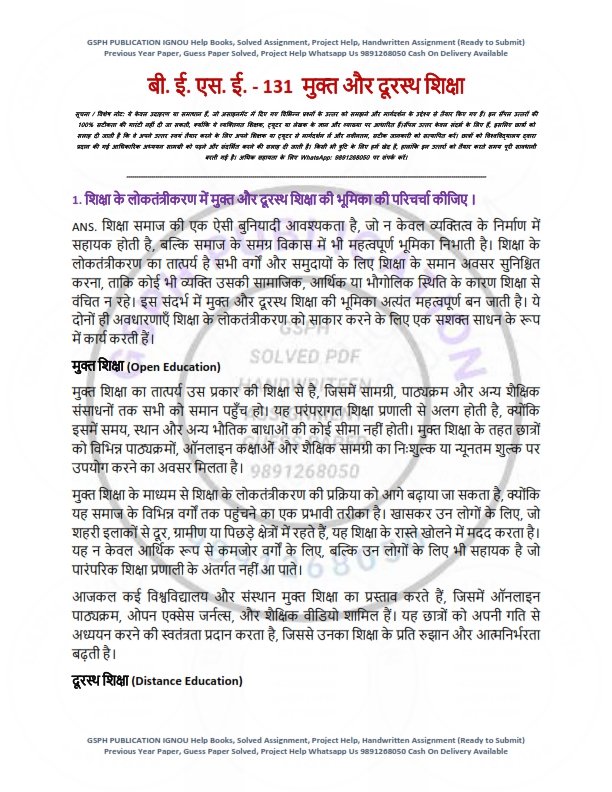 | Product | IGNOU BES-131 Solved Assignment 2025-26 Hindi Medium |