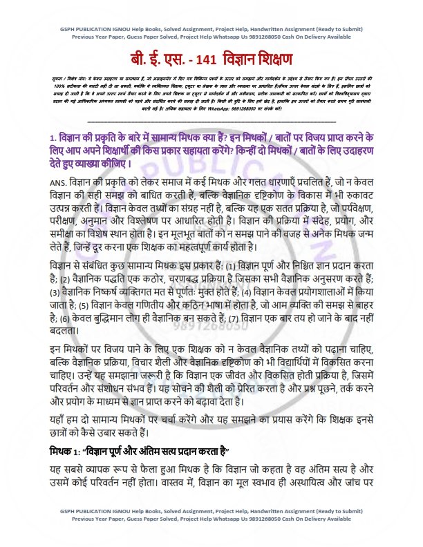 | Product | IGNOU BES-141 Solved Assignment 2025-26 Hindi Medium |
