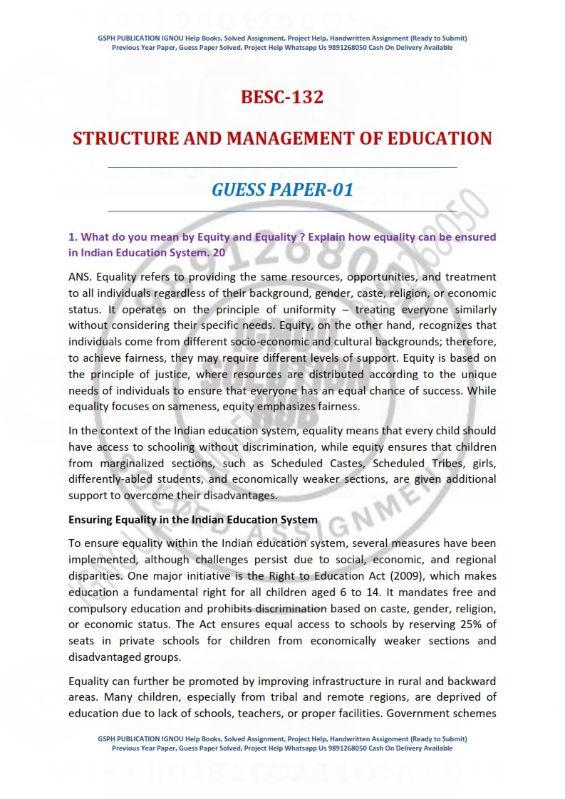 Note:-The IGNOU Guess Paper Solved (Subject) is provided strictly for reference and practice purposes only. It is intended to support students in their exam preparation and should not be considered as a guarantee that the exam questions will come from this paper. Students should use it as a supplementary resource alongside their official IGNOU study material.