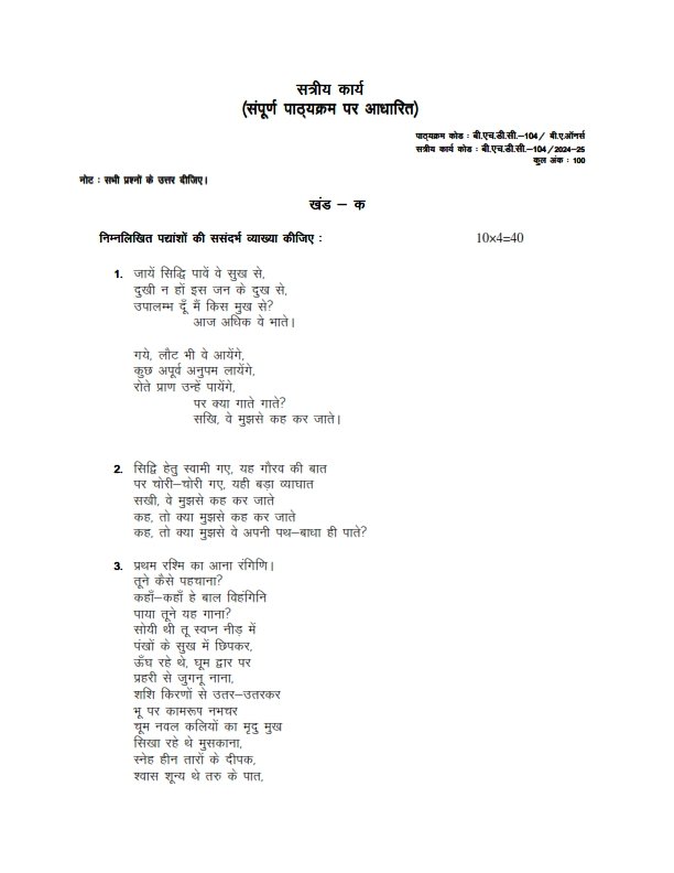 IGNOU BHDC-104 Solved Assignment 2024-25 Hindi Medium