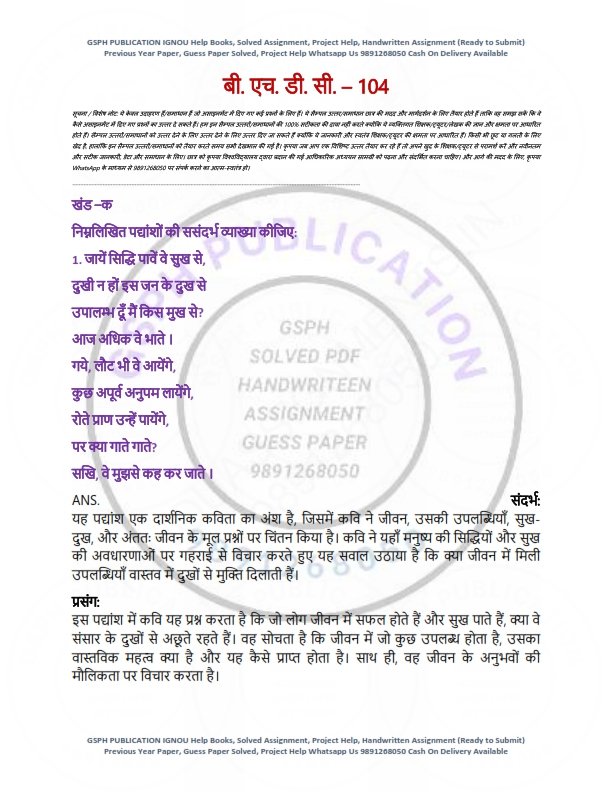 Product IGNOU BHDC-104 Solved Assignment 2024-25 Hindi Medium