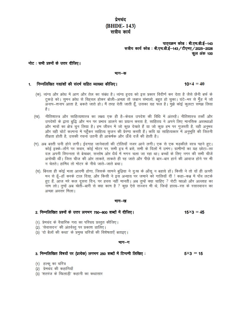 IGNOU BHDE-143 Solved Assignment 2025-26 Hindi Medium