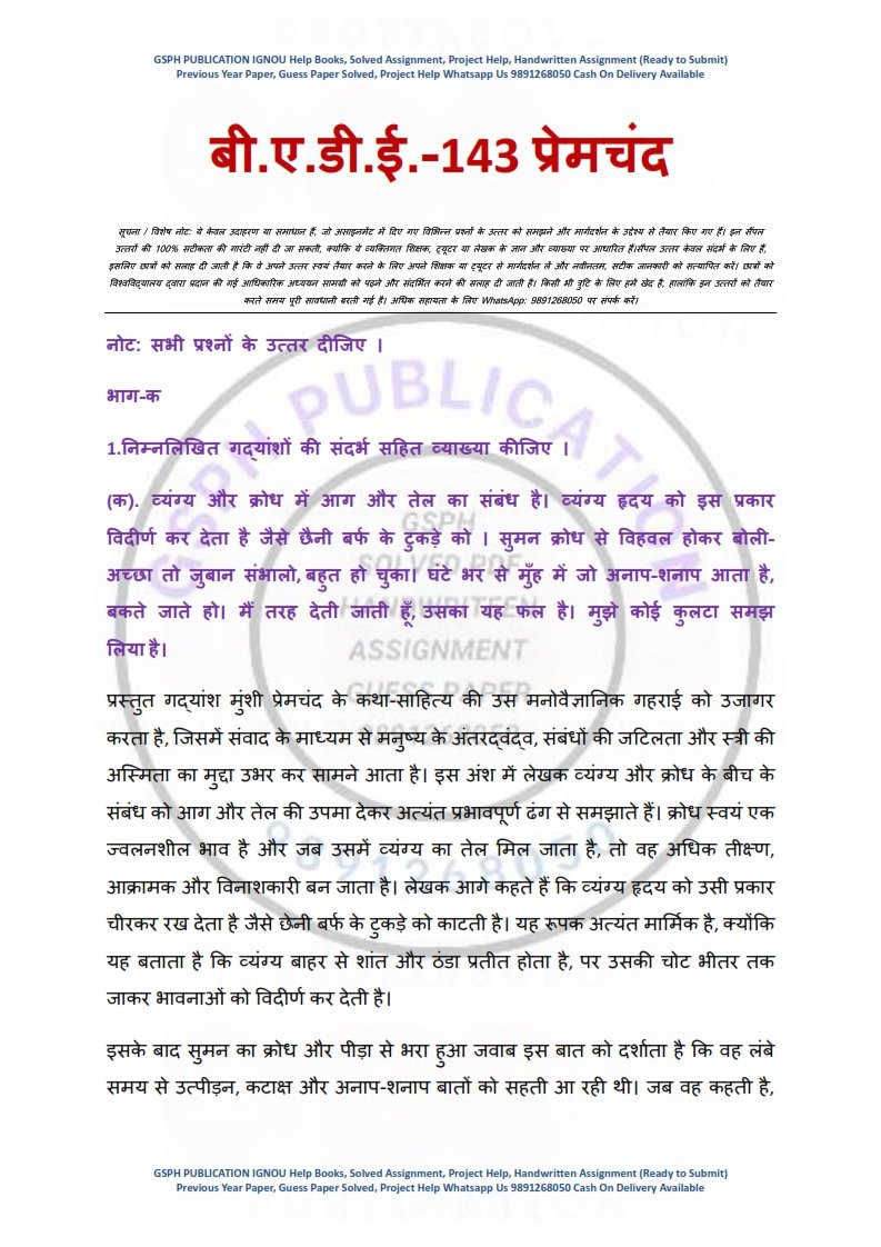 Get IGNOU BHDE-143 Solved Assignment 2025-26 Hindi Medium