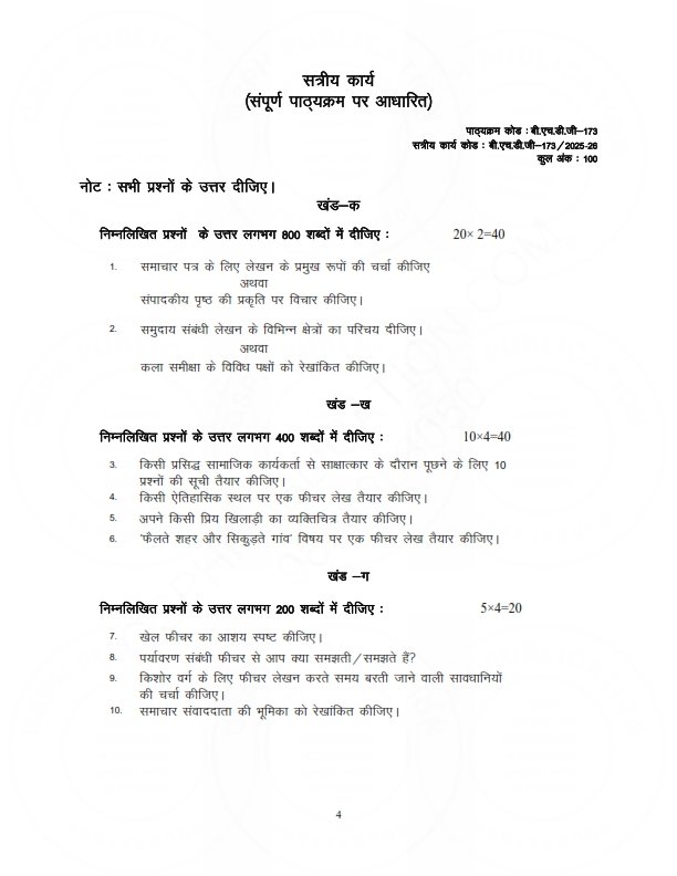 IGNOU BHDG-173 Solved Assignment 2025-26 Hindi Medium