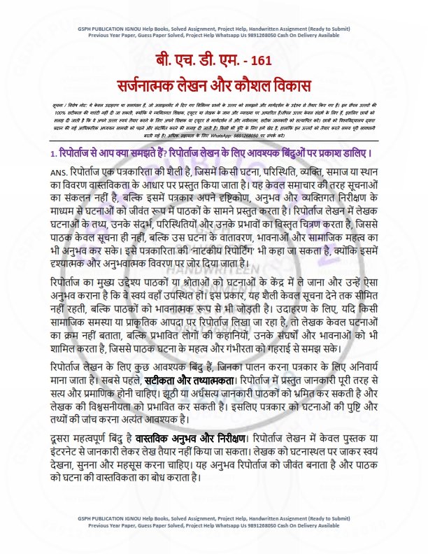 Get IGNOU BHDM-161 Solved Assignment 2025-26 Hindi Medium