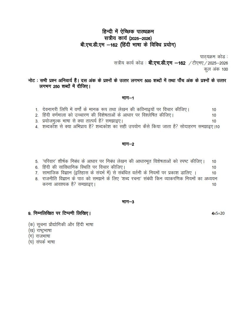 | Product | IGNOU BHDM-162 Solved Assignment 2025-26 Hindi Medium |