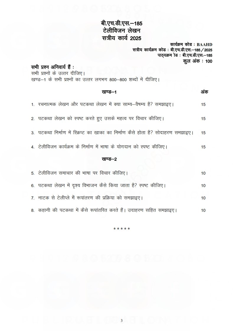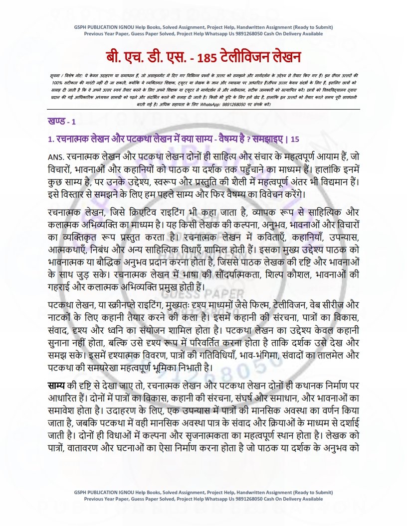 IGNOU BHDS-185 Solved Assignment 2025 Hindi Medium