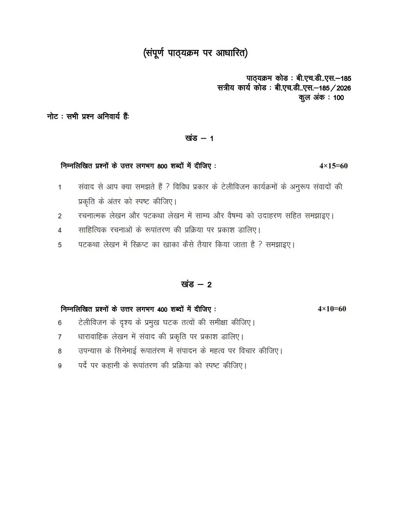 Get IGNOU BHDS-185 Solved Assignment 2026 Hindi Medium