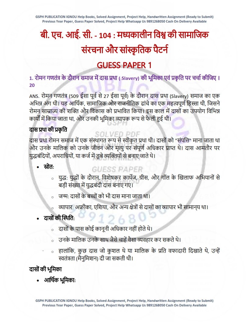 Prepare smartly for your IGNOU exams with our IGNOU BHIC-104 Guess Paper Solved Hindi Medium, specially designed for BAHIH students. This exam-focused guess paper provides important, expected questions with solved answers, helping you revise effectively and score better with confidence. The PDF is available for instant download after payment, making it fast, affordable, and convenient.