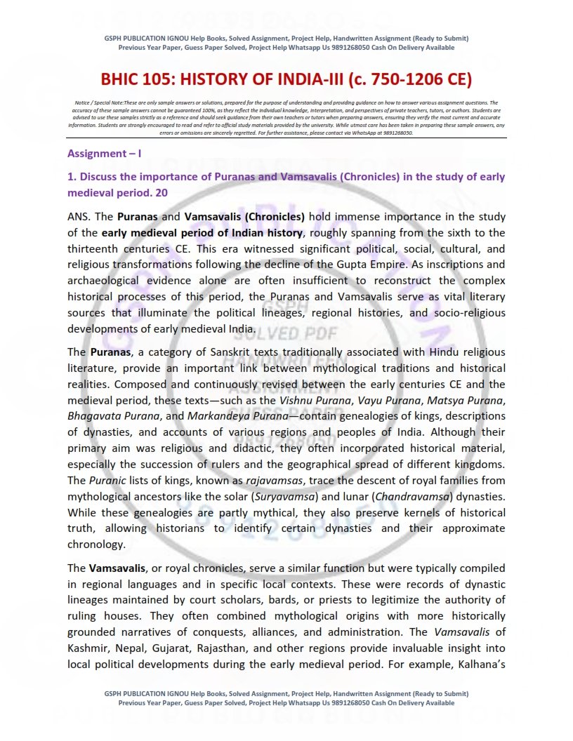 | Product | IGNOU BHIC-105 Solved Assignment 2025-26 English Medium |