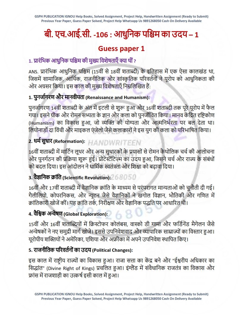 IGNOU BHIC-106 Guess Paper Solved Hindi Medium | Instant PDF Download