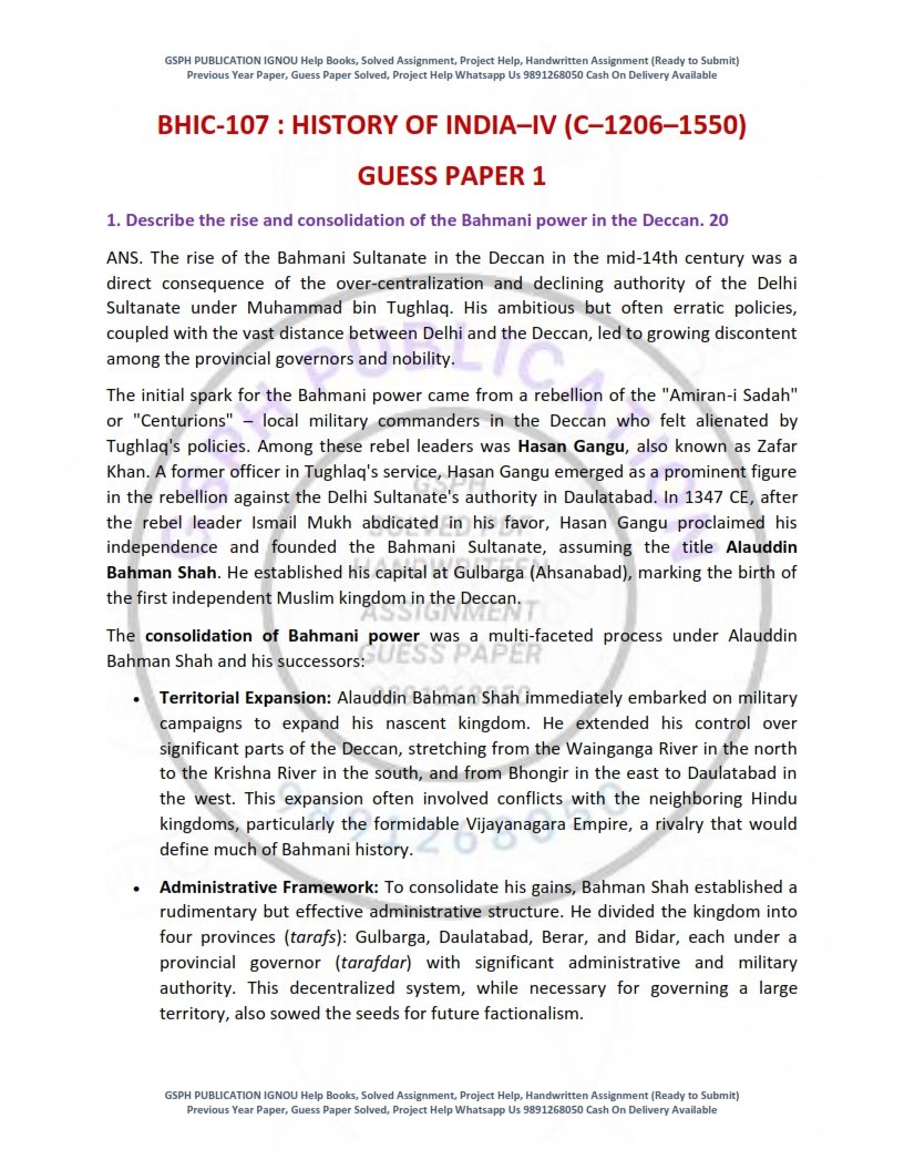 IGNOU BHIC-107 Guess Paper Solved English Medium | Instant PDF Download
