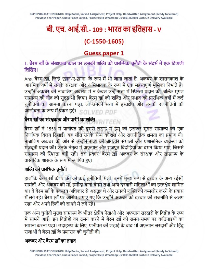 Prepare smartly for your IGNOU exams with our IGNOU BHIC-109 Guess Paper Solved Hindi Medium, specially designed for BAHIH students. This exam-focused guess paper provides important, expected questions with solved answers, helping you revise effectively and score better with confidence. The PDF is available for instant download after payment, making it fast, affordable, and convenient.