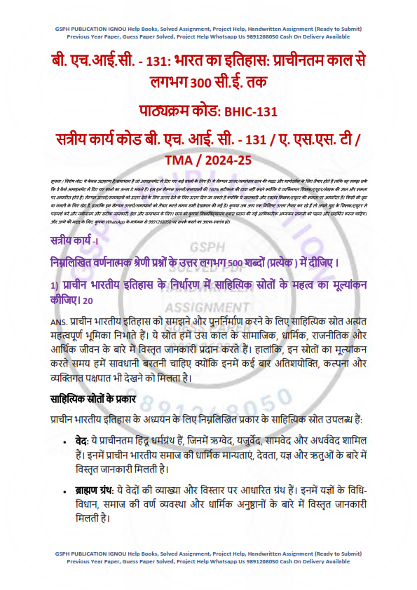 | Product | IGNOU BHIC-131 Solved Assignment 2024-25 Hindi Medium |