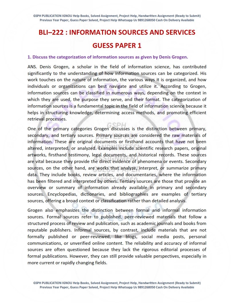 IGNOU BLI-222 Guess Paper Solved English Medium | Instant PDF Download
