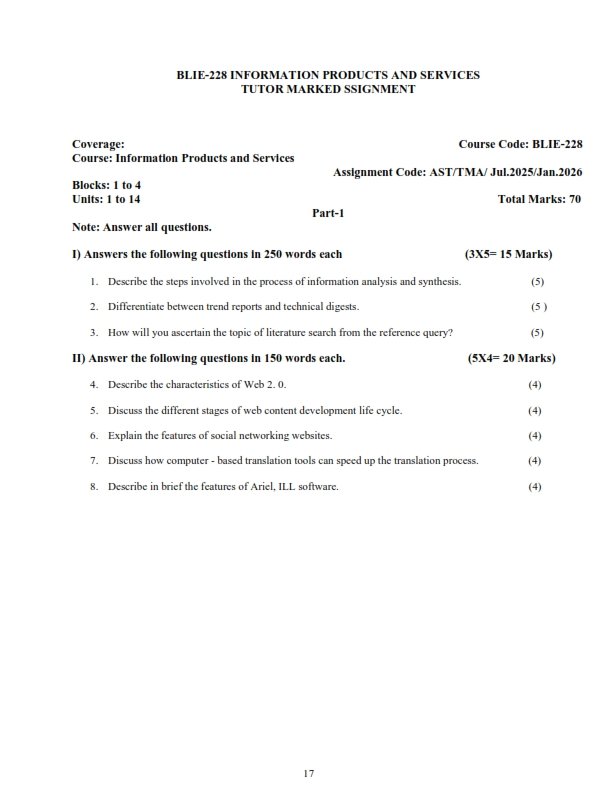 | Product | IGNOU BLIE-228 Solved Assignment 2025-26 English Medium |