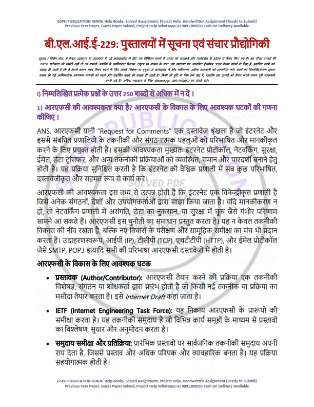 IGNOU BLI-221 Solved Assignment 2025-26 Hindi Medium
