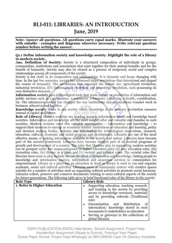 IGNOU BLII-011 Previous Year Solved Question Paper (June 2019) English Medium