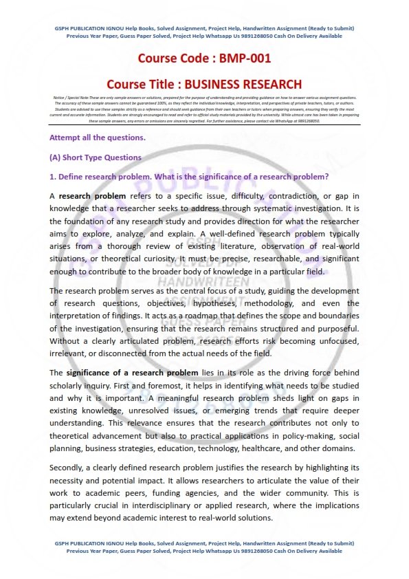 Product IGNOU BMP-001 Solved Assignment 2025 English Medium