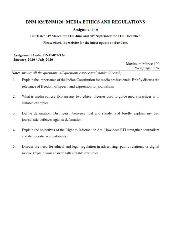 Are you searching for the IGNOU BNM-026 Solved Assignment 2026 English Medium? You are at the right place. This instant download PDF contains complete and accurate answers prepared by experienced academic experts as per the latest IGNOU guidelines. All solutions are written in simple and easy language to help you understand the subject better and score good marks.