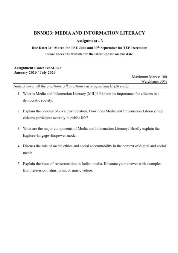 Are you searching for the IGNOU BNM-023 Solved Assignment 2026 English Medium? You are at the right place. This instant download PDF contains complete and accurate answers prepared by experienced academic experts as per the latest IGNOU guidelines. All solutions are written in simple and easy language to help you understand the subject better and score good marks.